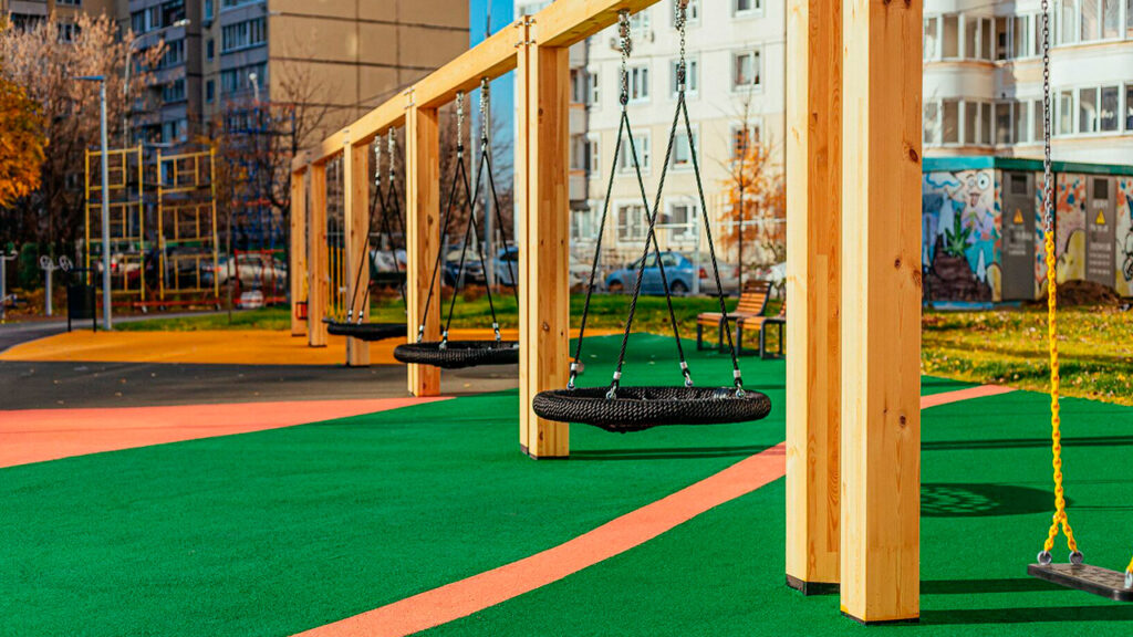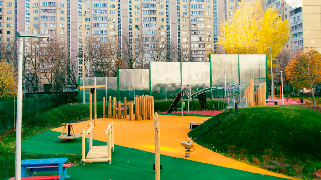 Особое внимание уделено и разнообразному озеленению: сотни кустов спиреи, десятки кленов и холмы, которые являются полноценными игровыми зонами.